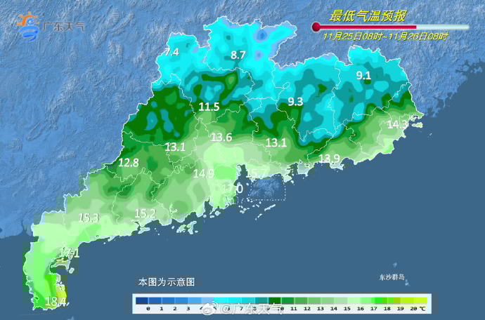 据@广东天气 消息,早晚清(寒)凉;24日下午到25日,南部沿海市区16~20℃,南部沿海市区16~20℃,新一股弱冷空气将自北向南影响广东,粤北和粤西市县多云间晴,昼夜温差大,